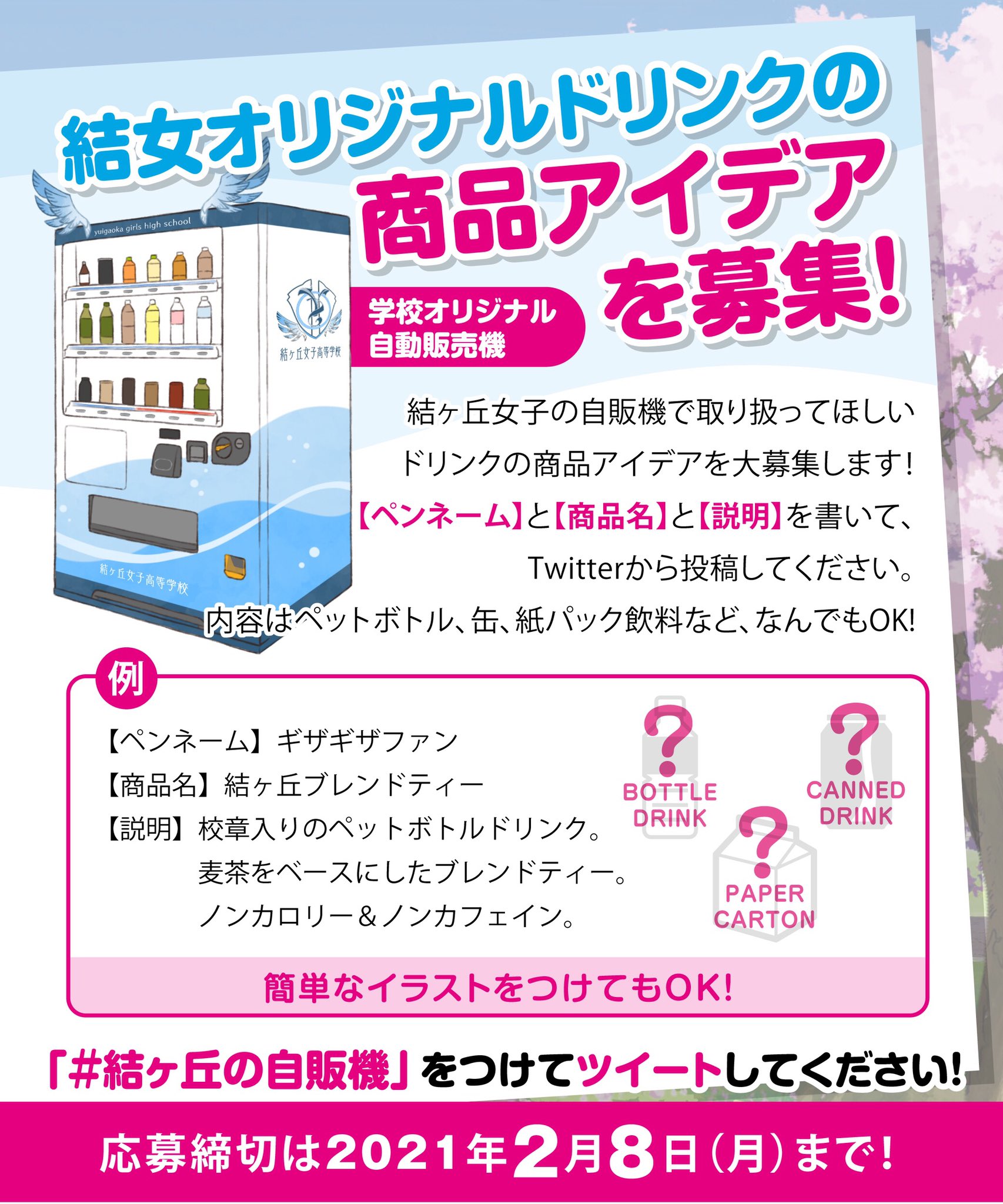 ラブライブ シリーズ公式 ラブライブ スーパースター 結女の自販機で取り扱ってほしいオリジナルドリンクを大募集 ペンネーム 商品名 説明 を書いて Twitterから投稿してください 投稿する際は 結ヶ丘の自販機 をつけて